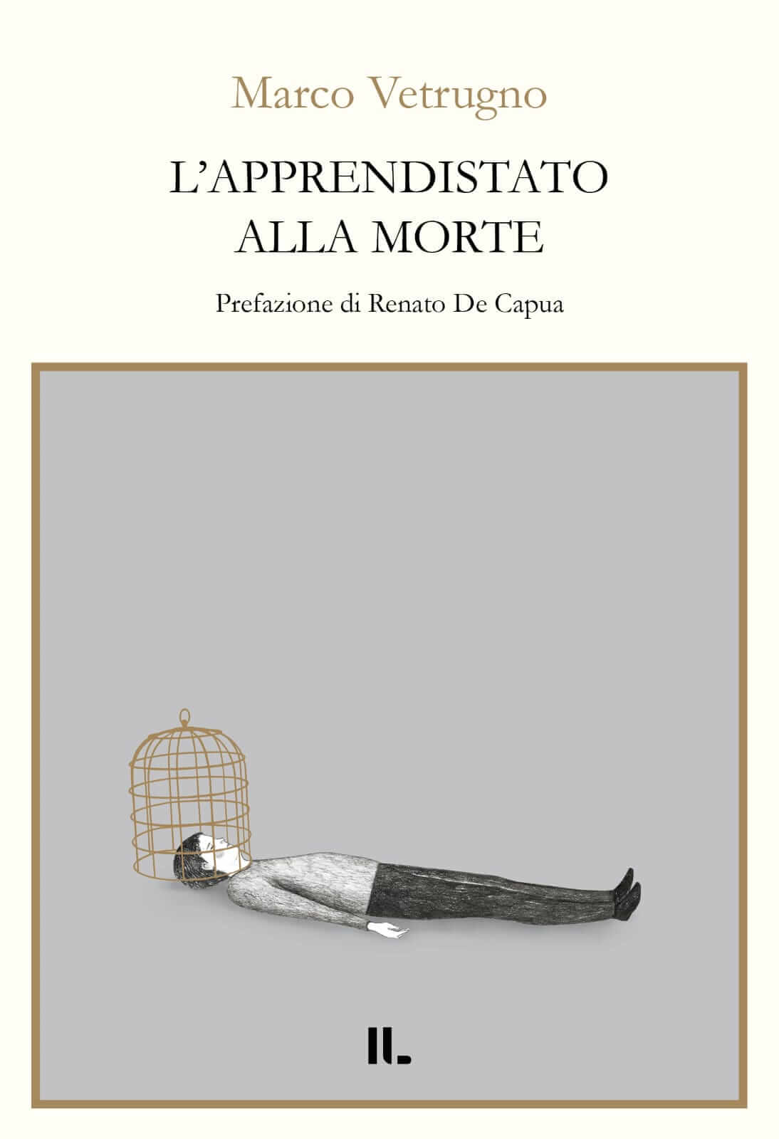 Radicale, definitivo, testamentario: sono questi i primi tre aggettivi che hanno inciso la mia coscienza critica durante la lettura dell’ultima silloge del salentino Marco Vetrugno (“L’apprendistato alla morte”, Interno Libri Edizioni, 2025), la cui copertina di Valeria Puzzovio ben rappresenta la tanatolatrìa dell’opera: un uomo dall’imprecisata età che giace disteso, morto o dormiente, con la testa intrappolata in una voliera vuota.